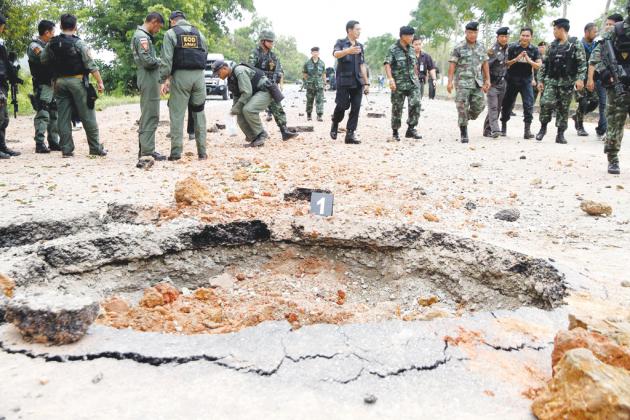 The 20kg home-made bomb, hidden in a pipe underneath a local road in Tambon Bor Thong, went off at around 11am and hit the six-strong “Santisuk” special task force team. They were returning in a pickup truck after a meeting of the Internal Security Operations Command Region 4 Front at the Sirindhorn Camp in Pattani's Yarang district.