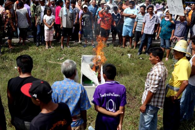 A protest leader Manoon Oopla said on Thursday that the protesters would soon burn three coffins for Prime Minister Yingluck Shinawatra, Finance Minister Kittiratt Na-Ranong and Agriculture Minister Yukol Limlamthong in front of each of the 19 district offices, as to pressure the government to tackle the sacking rubber prices.