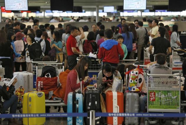 The typhoon wreaked havoc on airport schedules in Hong Kong, nearby Macau and mainland China, upsetting travel plans for many passengers who were returning home at the end of the three-day mid-autumn festival long weekend.