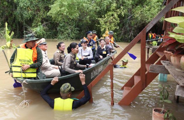 On Sunday, she visited Prachin Buri – one of the hardest-hit provinces where the situation seems to have worsened despite the flood-prevention efforts taken by the Muang Prachin Buri Municipality. Early yesterday, water levels rose to about 60 centimetres on most roads, flooding shops and leaving several cars and motorcycles stalled.
