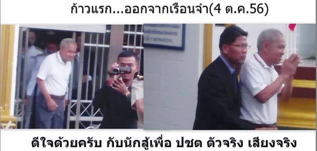 Surachai, a former communist insurgent and a red-shirt leader, also thanked the government of Prime Minister Yingluck Shinawatra and the ruling Pheu Thai Party for “never abandoning” those convicted of lese majeste offences. He said that he would later return to his home province of Nakhon Si Thammarat to be treated for a number of illnesses.