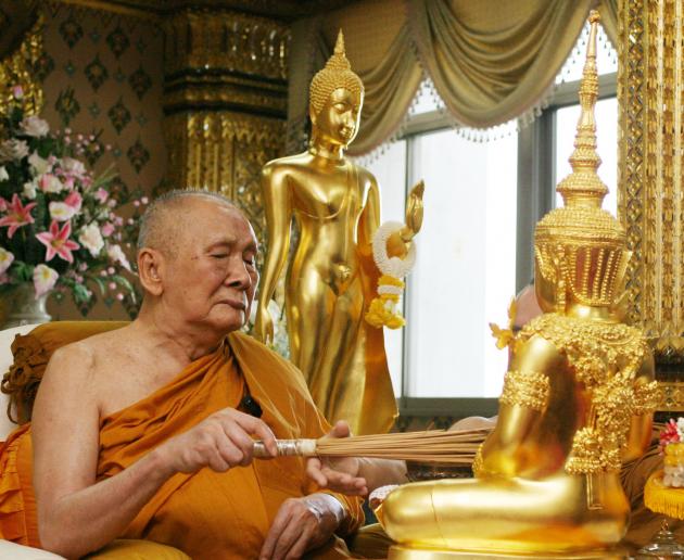 Charoen proved to be a bright student, despite poor health. At one time, he became so ill that his mother prayed to “sacred beings” – promising to ordain her son as a novice, if he survived. He did, and at the age of 14, Charoen was ordained. Since then – 86 years ago – he has only ever donned saffron robes.