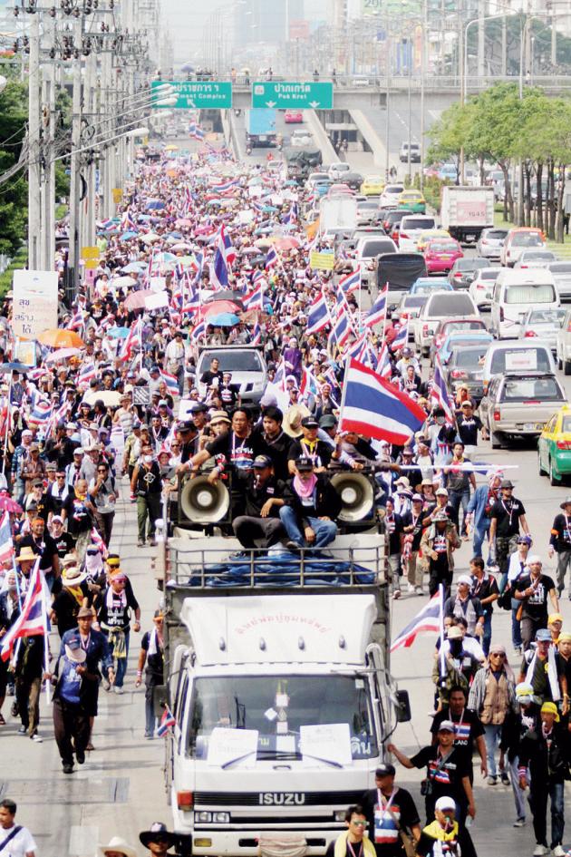 Thousands of anti-government People's Democratic Reform Committee protesters from the Government Complex rally site yesterday marched on the Department of Special Investigation (DSI), CAT Telecom and TOT Plc, to stage a series of symbolic sieges.
