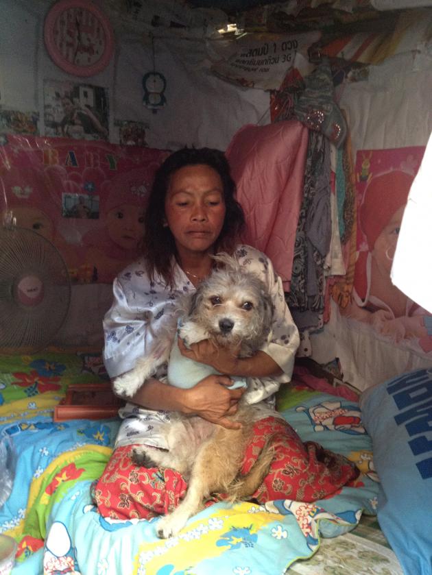 Saipin said the worst case of tear-gas exposure he had come across was in a small white dog called Foremost, who belonged to Yaowarej Poomkajang, a fried banana vendor living near Wat Khae Nang Lerng. Foremost had gone out looking for his owner on Tuesday evening amid the protests, and it was found the next day by Yaowarej wandering around Prince Hotel, blind, with eyes gummed shut.