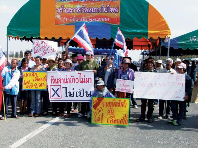 “We want our harvest back now. It can be sold for money elsewhere,” Prakasit Jamjumrus said yesterday as he led a group of protesters to block a key road in the province. Farmers in several other provinces are also planning to stage roadblocks in their hometowns and join the anti-government rallies in Bangkok if payments are delayed further.