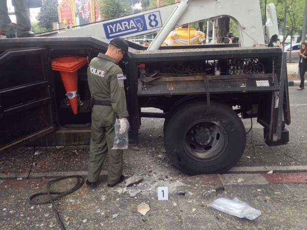 Pol Lt-Colonel Sitthisak Nakamat, deputy superintendent of Dusit Police Station, said initial investigations found that two men wearing crash helmets while riding motorcycles were responsible for the attack.