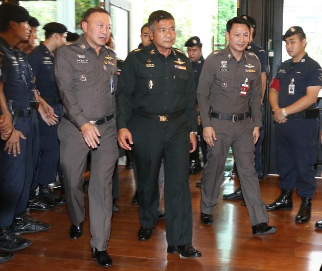Dressed in military uniform, the Army’s special adviser did not speak to reporters when he showed up at 11.30am. He was briefly questioned by the police before being escorted to board a plane for Songkhla province, and later to Hat Yai Police Station for further questioning.