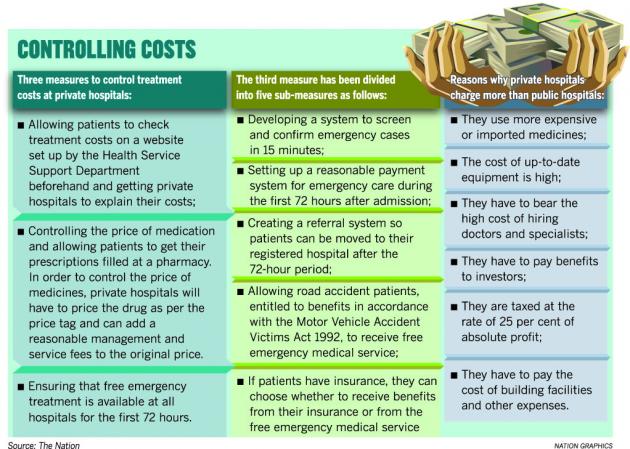 The medical hub policy should be reconsidered, she said, because private hospitals are focusing more on foreign customers who can be charged 50 per cent higher than Thai patients. As a result, the overall outlook for fees would be an increase for local patients in order to keep a balance.