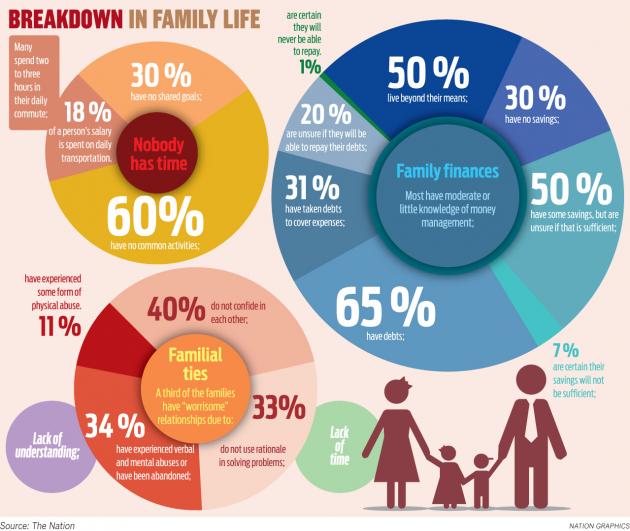 These are some of the grim findings of a recently revealed “Thai Urbanised Family 2014” research.