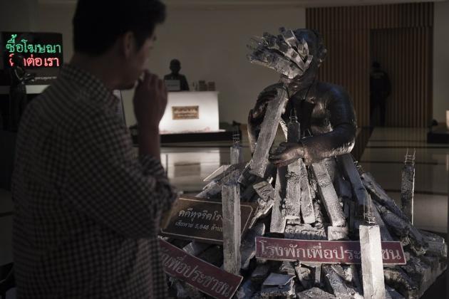 "Each sculpture illustrates national cases of corruption which trouble my heart, because each one has caused tremendous damage," said 19-year-old Tatpitcha Khanumsee.