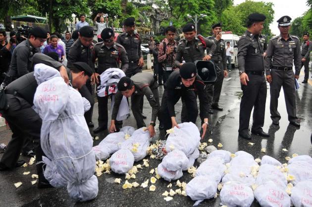 Police clear a road in front of the Parliament after members of the New Democracy Movement finish their protest on Tuesday. The protest was against the junta's appointment of new charter drafters.