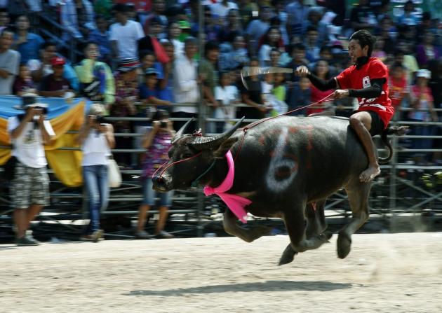 The Thai water buffaloes are not as aggressive as Spanish bulls, though.