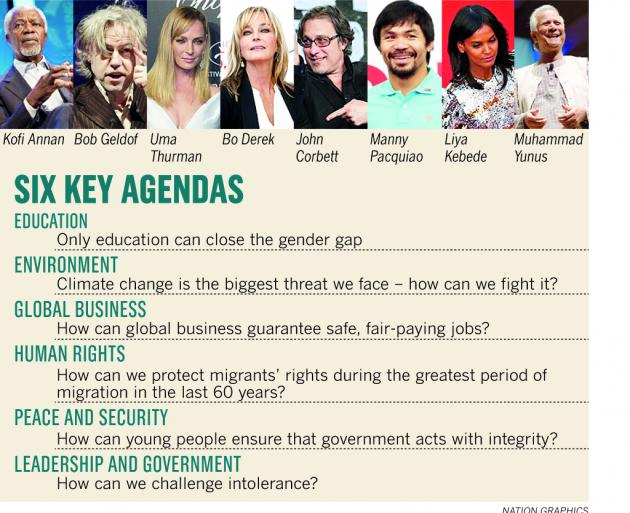 Hundreds of international companies have sponsored creative youngsters to come and debate some of the world’s most pressing issues at the summit, with the global-icon elders acting as interlocutors or counsellors.
