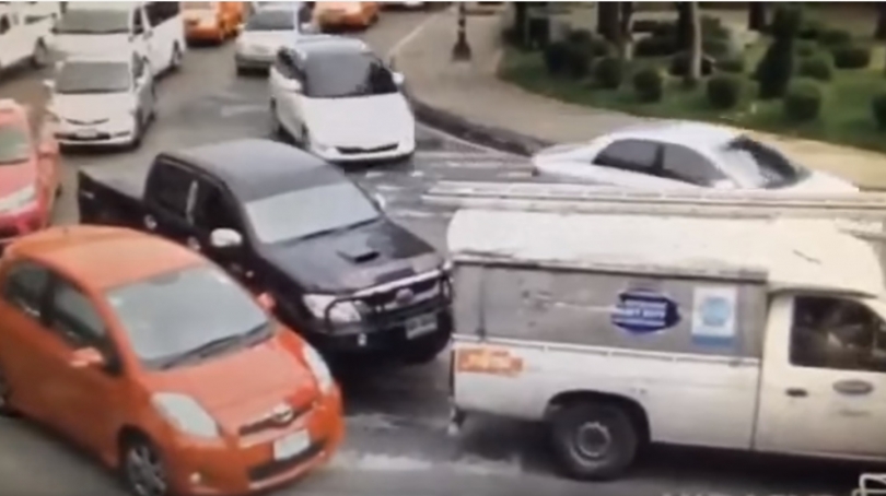 Pattamon Bthird Pinpetch shared the CCTV clip with the comment: “If [DJ Keng] had not lied and hadn’t driven his car into another, he would have looked really good. The case would have been the other way around.