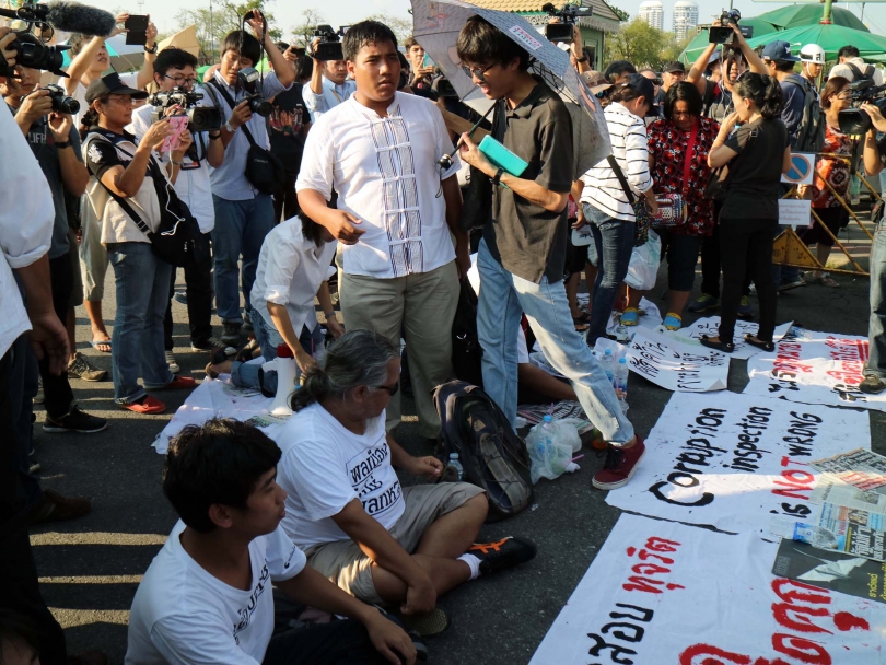 However, Sirawit said on the website of his group New Democracy Movement that he was blindfolded while being taken to the suburban police station. He claimed to have been booted, slapped and pounded with a fist a few times, and said he felt like being prodded with the muzzle of a gun.