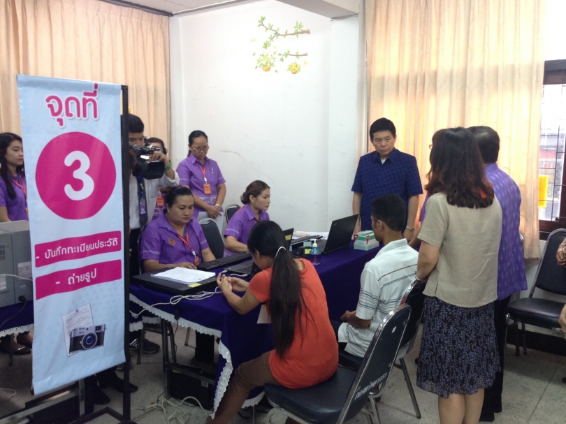 About 100 workers underwent the registration process in Uthai Thani yesterday.