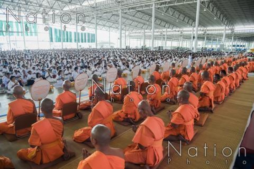 At the temple yesterday, thousands of followers took part in a religious ceremony to donate food to temples all over the country. A large number of monks from other temples took part in the ceremony.