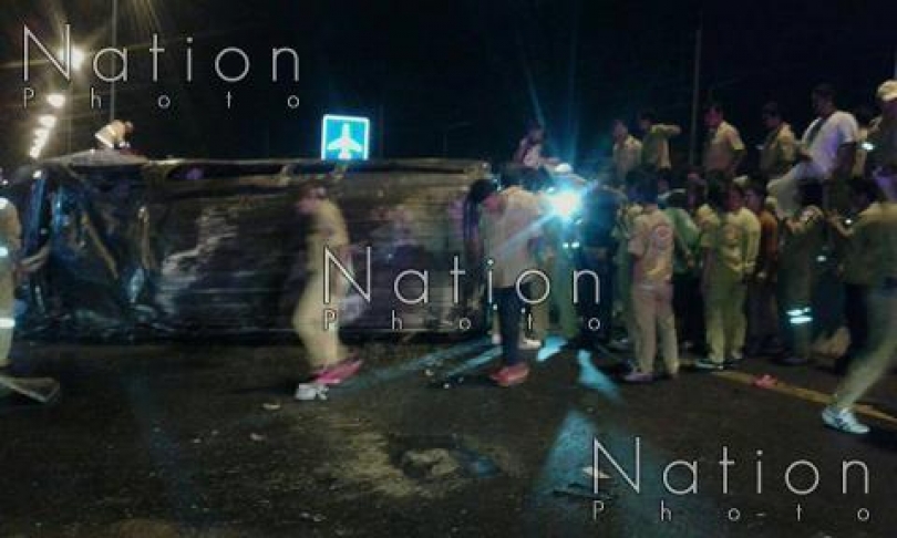 The van was travelling back from Rayong with 15 people onboard when it hit a motorway barrier in Chon Buri’s Muang district at around 9pm.