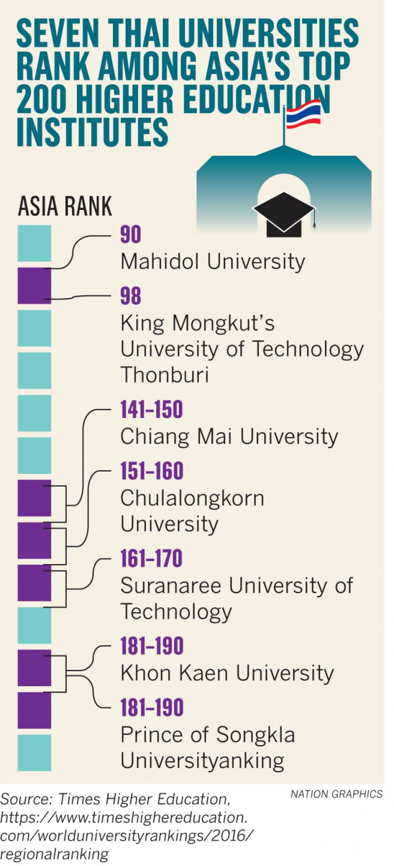 “It is disappointing that only seven Thai universities make this list of Asia’s best universities and that the country has not made more of a dent in the top half of the table,” Phil Baty, Times Higher Education rankings editor, said.