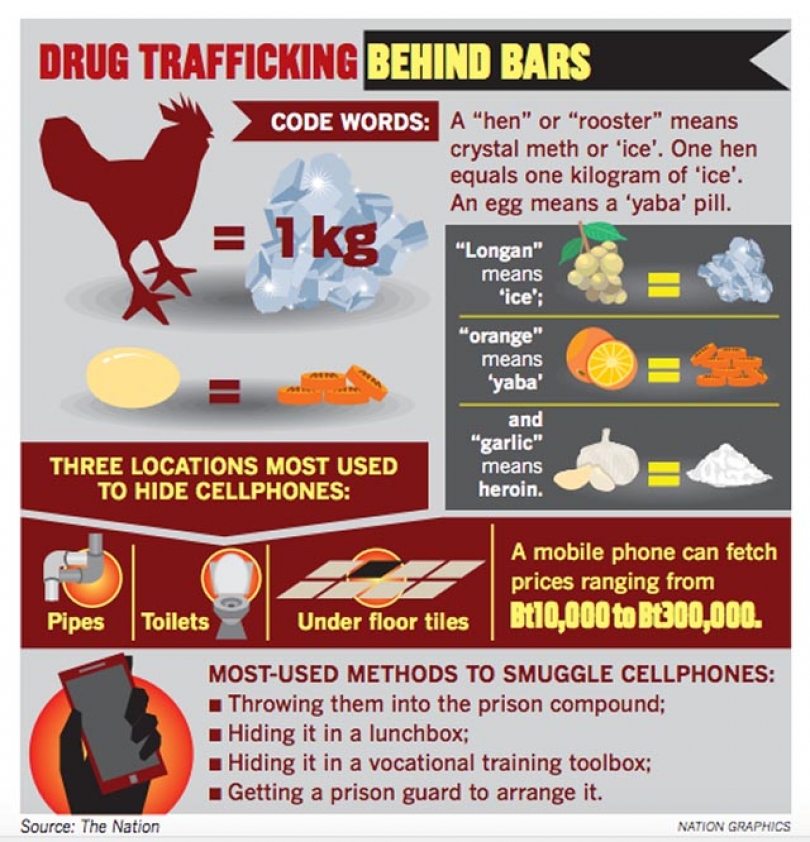 Although orders can be placed when inmates have visitors, a phone call with a trusted person is the preferred method – hence the relentless smuggling of cell phones into jails. With a huge amount of money at stake, the price for smuggled phones ranged from Bt20,000 to Bt300,000, Kobkiat said.