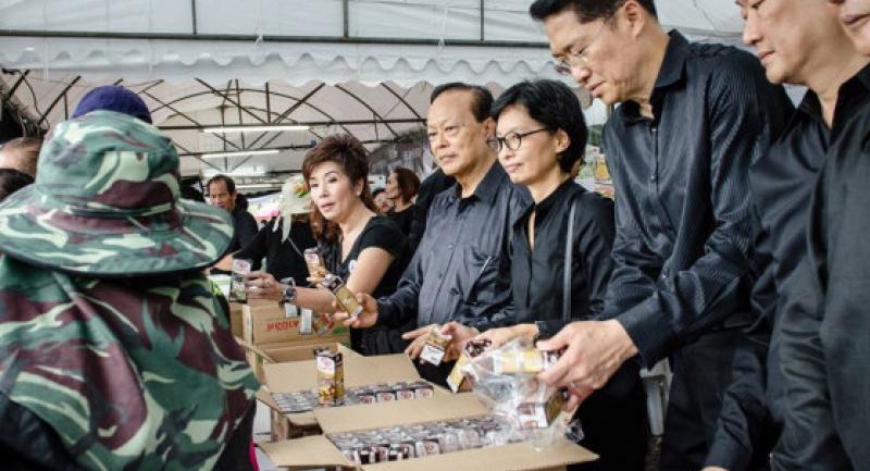 They handed out the milk and drinks in front of the Royal Hotel in the name of the Seni Pramoj Foundation.
