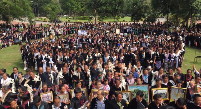 Ninety-nine representatives from eight hilltribes gathered in front of the Chiang Rai City Hall yesterday to start their sponsored journey to the Grand Palace in Bangkok so they can pay respect to His Majesty King Bhumibol Adulyadej’s Royal Urn. They will first board a bus from Chiang Rai to Chiang Mai, before boarding a Bangkok-bound train.