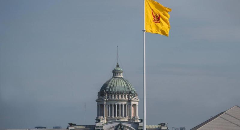 The yellow plain square flag with a dancing red Garuda in the centre or “Thong Maharaj” is the official flag of the King of Thailand.