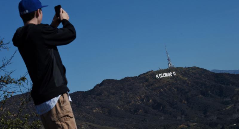 CCTV filmed the man climbing a fence into the restricted area near the sign on Mount Lee around 3 am (1100 GMT) on New Year's Day, the Los Angeles Times reported, citing a local official.