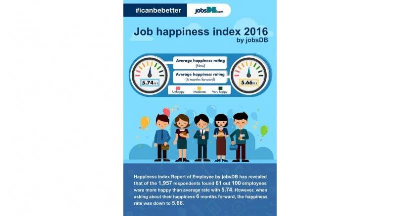 jobsDB’s 2016 Happiness Index Report of employees revealed that among people in seven Asian countries surveyed, Thais have the third highest job happiness rate. The other countries are Hong Kong, Vietnam, the Philippines, Malaysia, Singapore, and Indonesia.