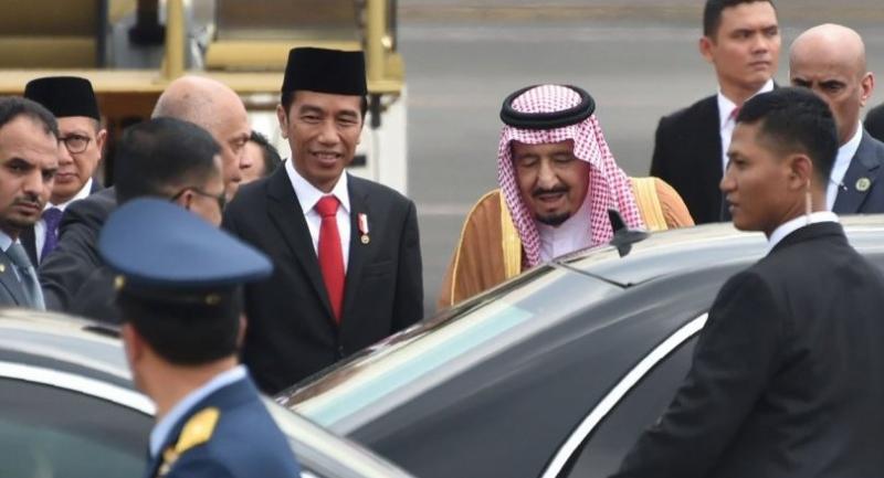 The king -- who is accompanied by about 1,000 people, including princes and ministers -- disembarked from his official plane at a Jakarta airport and was welcomed by President Joko Widodo and a guard of honour.