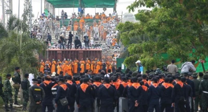 Dhammakaya Temple has been declared a special controlled area after the invocation of Article 44 of the interim charter as authorities have stepped up efforts to apprehend Phra Dhammachayo. Thousands of security officials are at the site on standby to carry out another search at the temple. Many people believe that if Phra Dhammachayo loses his status as a monk, he will also lose the trust of his followers, making it easier for authorities to take action against him.