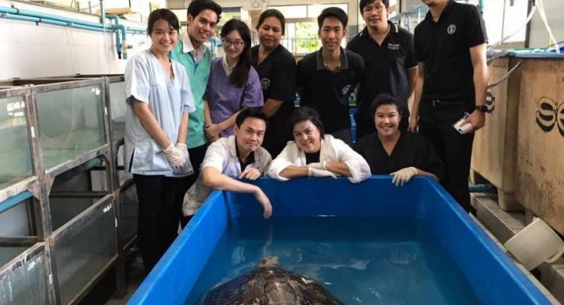 Ormsin received an operation on Monday. The turtle was rescued from Chon Buri’s Sri Racha district and nicknamed Ormsin.