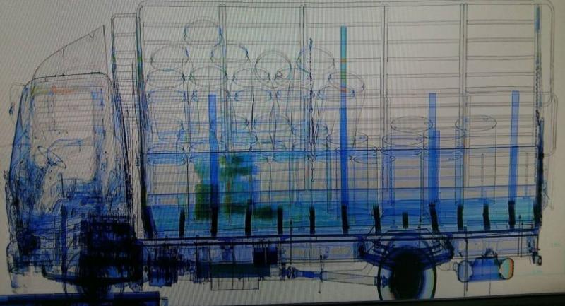 The X-ray machine revealed the drugs hidden inside a bucket concealed under blue canvas spread over the bed of the truck.