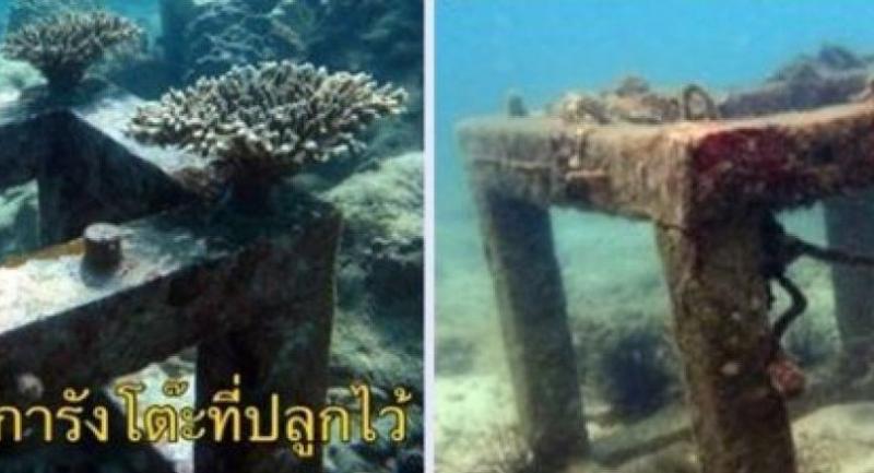 Suchana Chavanich, of marine science department, Faculty of Science, wrote in her Facebook that she was shocked and disheartened during a recent dive at Koh Chan to check on the seven-year-old table corals which were about 15cm long.