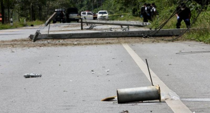 The blasts damaged 52 electricity poles, causing blackouts in many areas of Pattani, Yala, Narathiwat and Songkhla provinces.