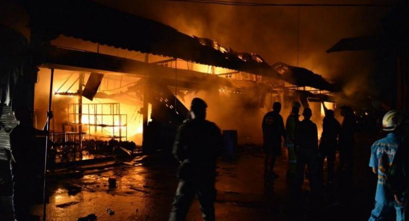Police officers are still investigating the cause of the blaze, which broke out at around 3am near Fa Prathan Co in the Dech Thai market zone for second-hand goods.