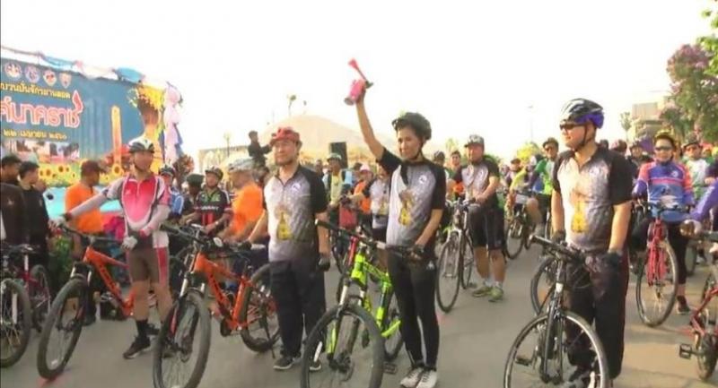 The group, which included provincial governor Somchai Witdamrong, then moved onto the third Thai-Lao Friendship Bridge and made a U-turn back to the starting point to complete the 30-kilometre journey.