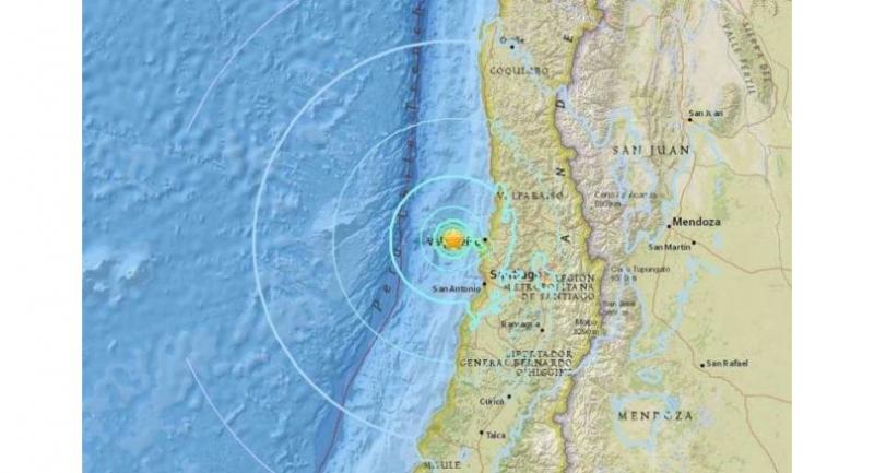 The tremor took place at 11.36 pm (0236 GMT), centered off the coast at 42 kilometers (26 miles) west of Valparaiso, according to the US Geological Survey.