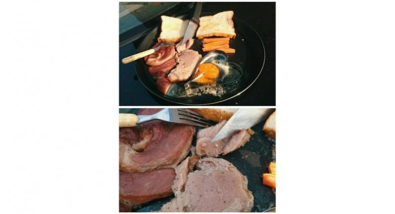 The famous SchwedaKong cooking fanpage on Facebook has posted pictures of medium-rare gammon steak with toast and fried egg that was cooked by placing the ingredients in a black skillet in a car on a hot afternoon and letting the extreme heat do the rest.