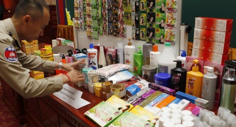 The cosmetics included bottles of hair dye, skin-whitening creams and shampoo worth "millions of dollars", said Meach Sophana, the head of government's counterfeit committee.