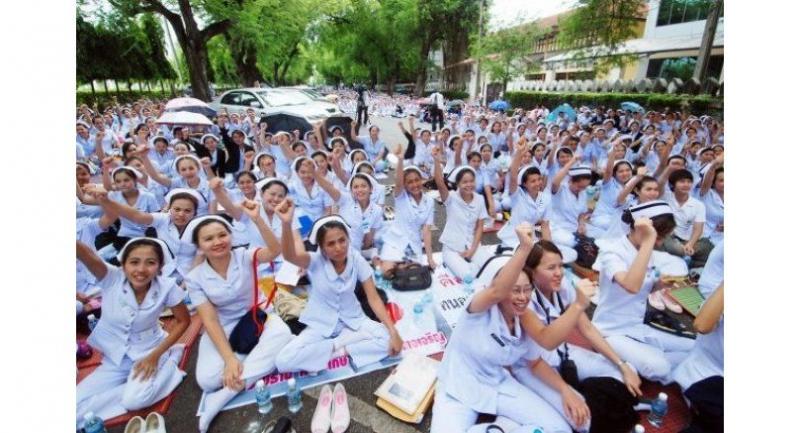 “Every year the line for registering in the civil-servant system gets longer and longer and right now there are around 15,000 nurses in line and receiving only a Bt10,000 to Bt13,000 salary, but they have to work eight hours per shift and 30 shifts per month without proper welfare and annual raises.”