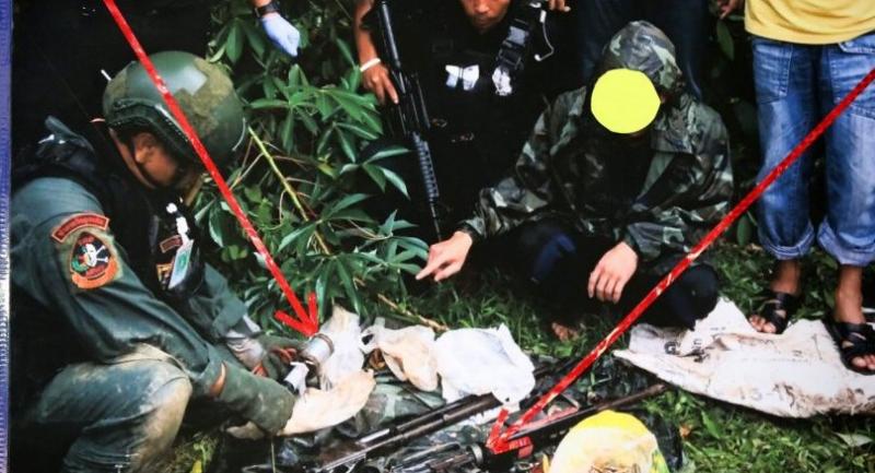 Piyawat said the authorities seized an M16 assault rifle from Hasun, a shotgun, a grenade, plus 135 rounds of M16 ammunition.