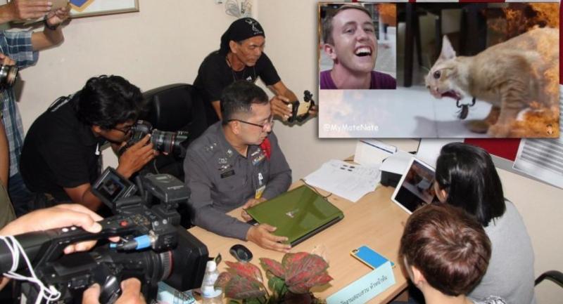 Nutch Prasopsin, the administrator of the website Kingdom of Tigers (“Toon Hua Khong Bao” in Thai), which is popular among cat owners, and other animal lovers, filed their complaint at the Huai Khwang Police Station against “My Mate Nate”. She accused the famous YouTuber of committing cruelty against animals for exposing his own cats to a venomous arachnid.