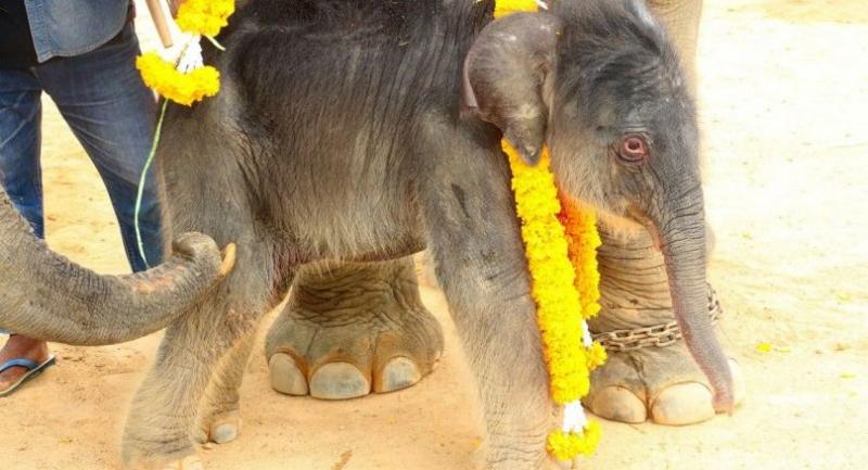 The abbot blessed the eighth baby elephant, born on June 15, and named it Phang Sophee.