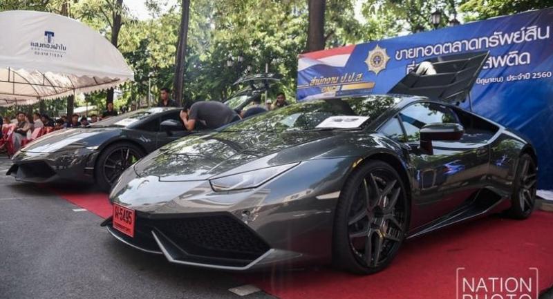 The auction featured items seized from drug trafficking gangs, including a Lamborghini car seized from Akarakit “Benz Racing” Worarojcharoendet, and a KTM ‘super bike’ seized from Nattapol Narkam, both of who police linked to a network led by alleged Laotian drug kingpin Xaysana Keopimpa.