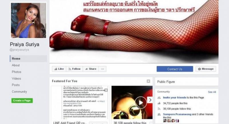 The woman has opened her Facebook page with the account name of Praiya Suriya and has 38,041 followers and 34,676 likes.