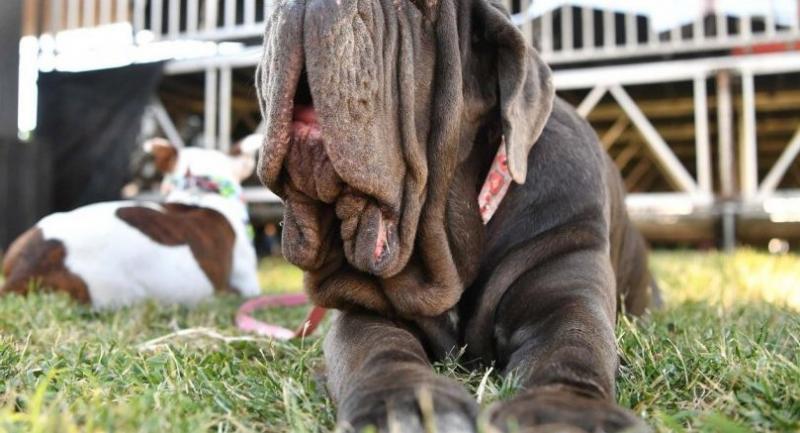 Zindler is fostering the three-year-old Neapolitan Mastiff, a breed known for its excess loose skin and a tendency to drool.