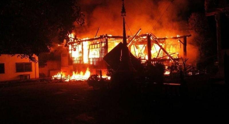 The blaze started at about 8.30pm and also burnt a century-old Buddha statue made of fragrant wood and some Bt100,000 in cash donations.