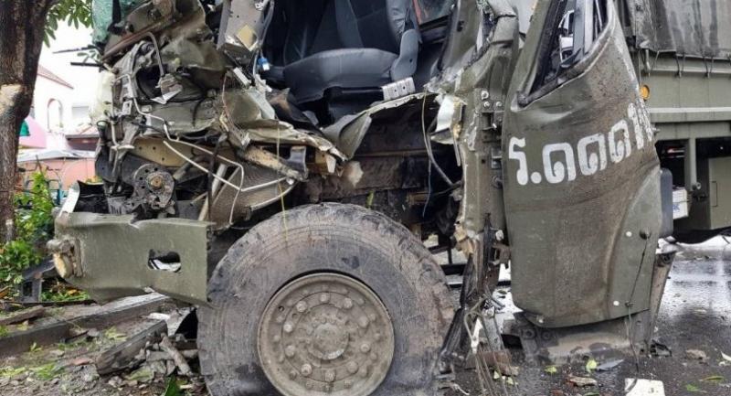 Pol Captain Warakorn Saiwaew, an officer on duty of Muang Prachin Buri police station, said the accident happened at 10.30am on a bypass road in Muang district while the military truck was heading downtown.