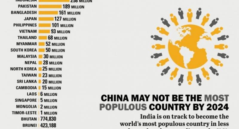 Other populous Asian countries are Indonesia (258 million), Pakistan (189 million), Bangladesh (161 million), Japan (127 million) and Philippines (101 million), as per data from UN.